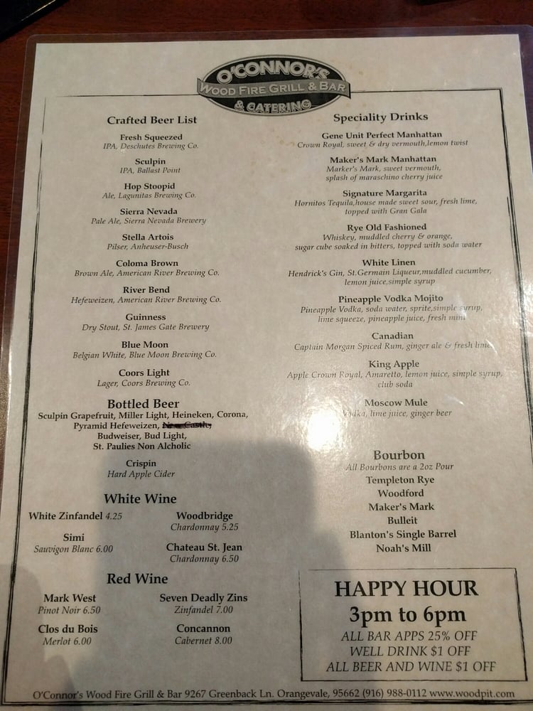 Welcome to O’Connors Wood Fire Grill & Bar, where Italian flavors meet southern barbecue in a warm, inviting atmosphere. Nestled in Orangevale, this neighborhood gem offers an eclectic menu that caters to diverse palates, featuring standout dishes like jambalaya linguini and expertly cooked salmon.